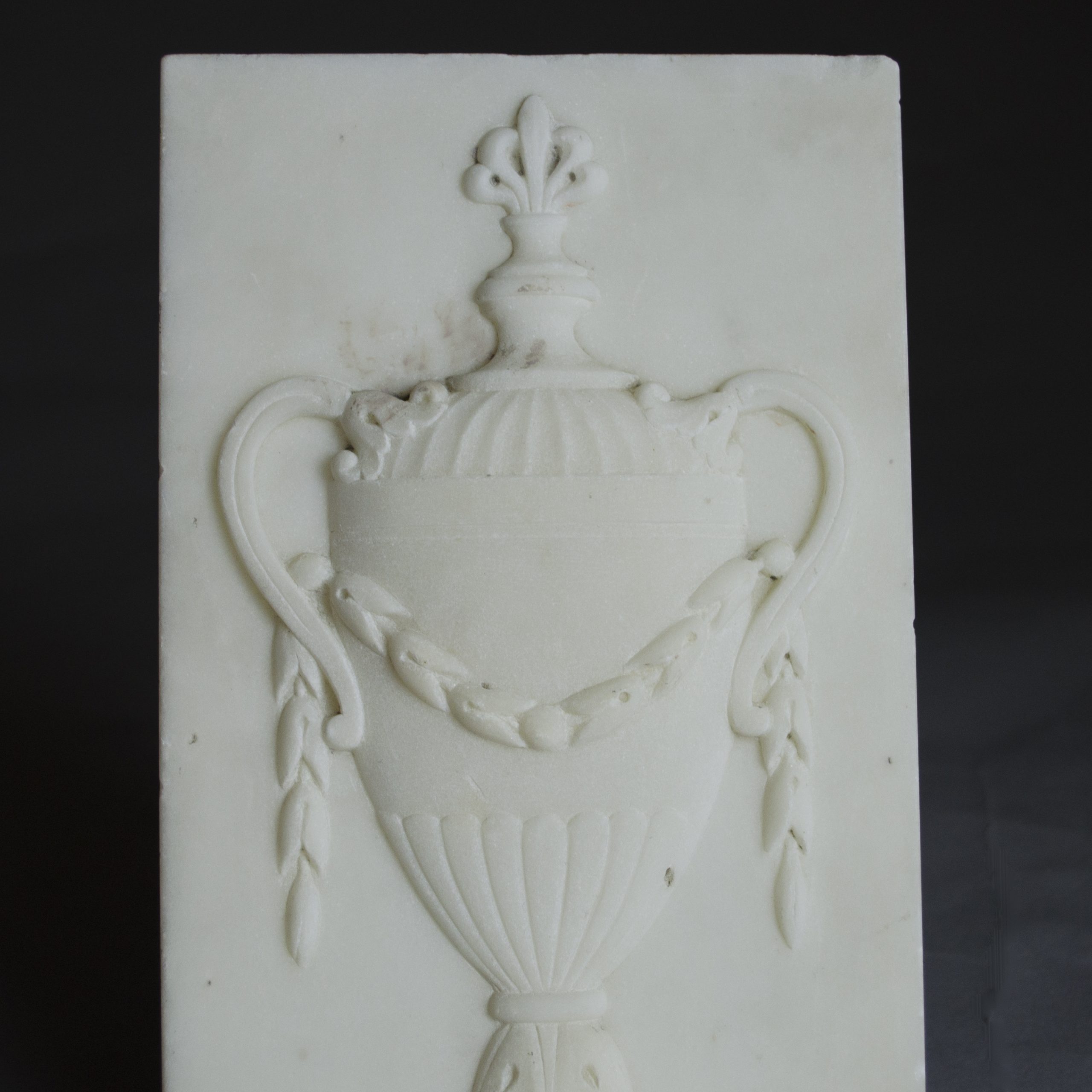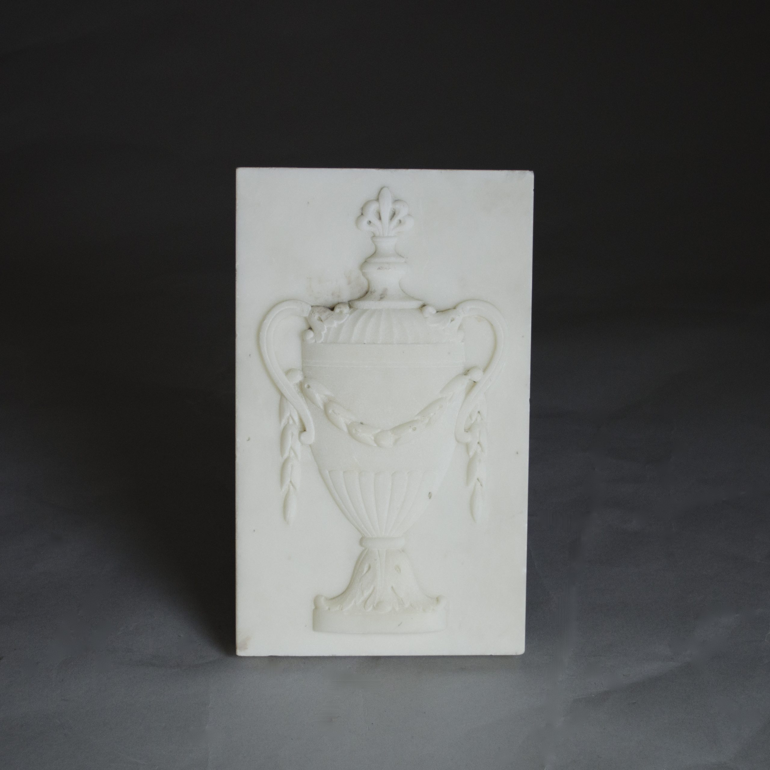 10227 A fine Victorian statuary marble plaque, a Neoclassical two-handled vase with bell flowers in late Georgian style. English 1850 Height: 10 ins (25.5 cms) Width: 6 ins (15 cms) £700 Categories: Objects, Sculpture, Works of Art Related products French Louis XVI Style Gilt Bronze Mounted Qianlong Vase Read more French Gilt Bronze Mounted Vellum Casket Read more Louis XIV Olivewood and Brass Mounted Coffer Read more A Renaissance Style White Marble Relief Panel by the Master of the Cat Read more